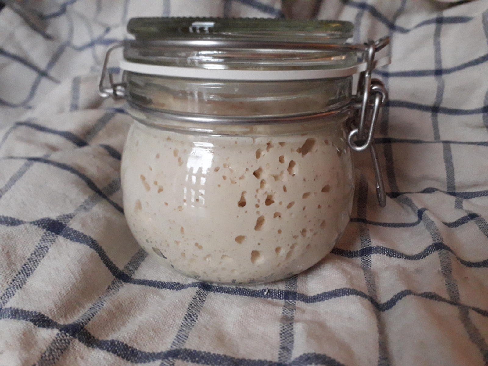 Un lievito madre in salute non odora di aceto/vinavil e triplica il suo volume ogni 4 ore.