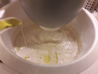 3) Aggiungere la farina, usate una farina tipo 1 da i W bassi con circa 11 gr di proteine(in genere quelle del marchio del supermercato vanno bene), così nel giro di un paio d’ore sarà pronta per la cottura, per ultimo mettete il sale.