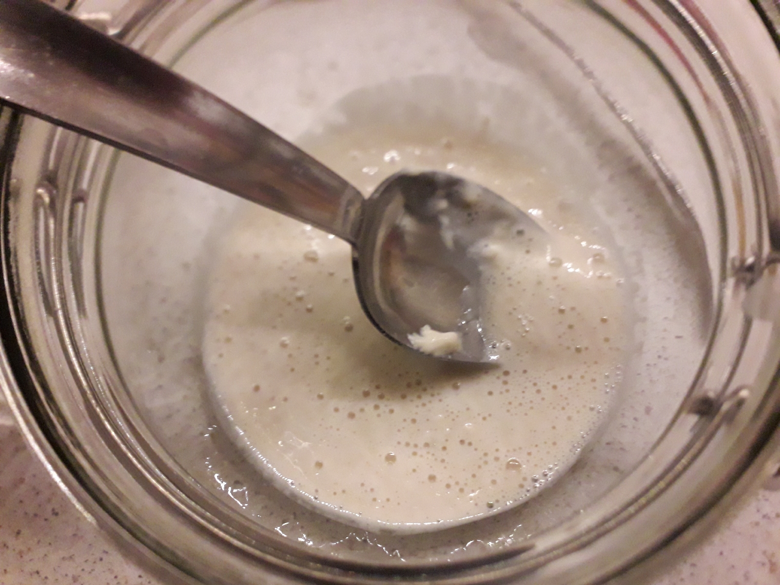6) rinfresco dopo 11 ore, senza levare lo strato in superficie. Mi raccomando usate sempre contenitori puliti. Non usate lo stesso contenitore o contenitori non puliti correttamente.