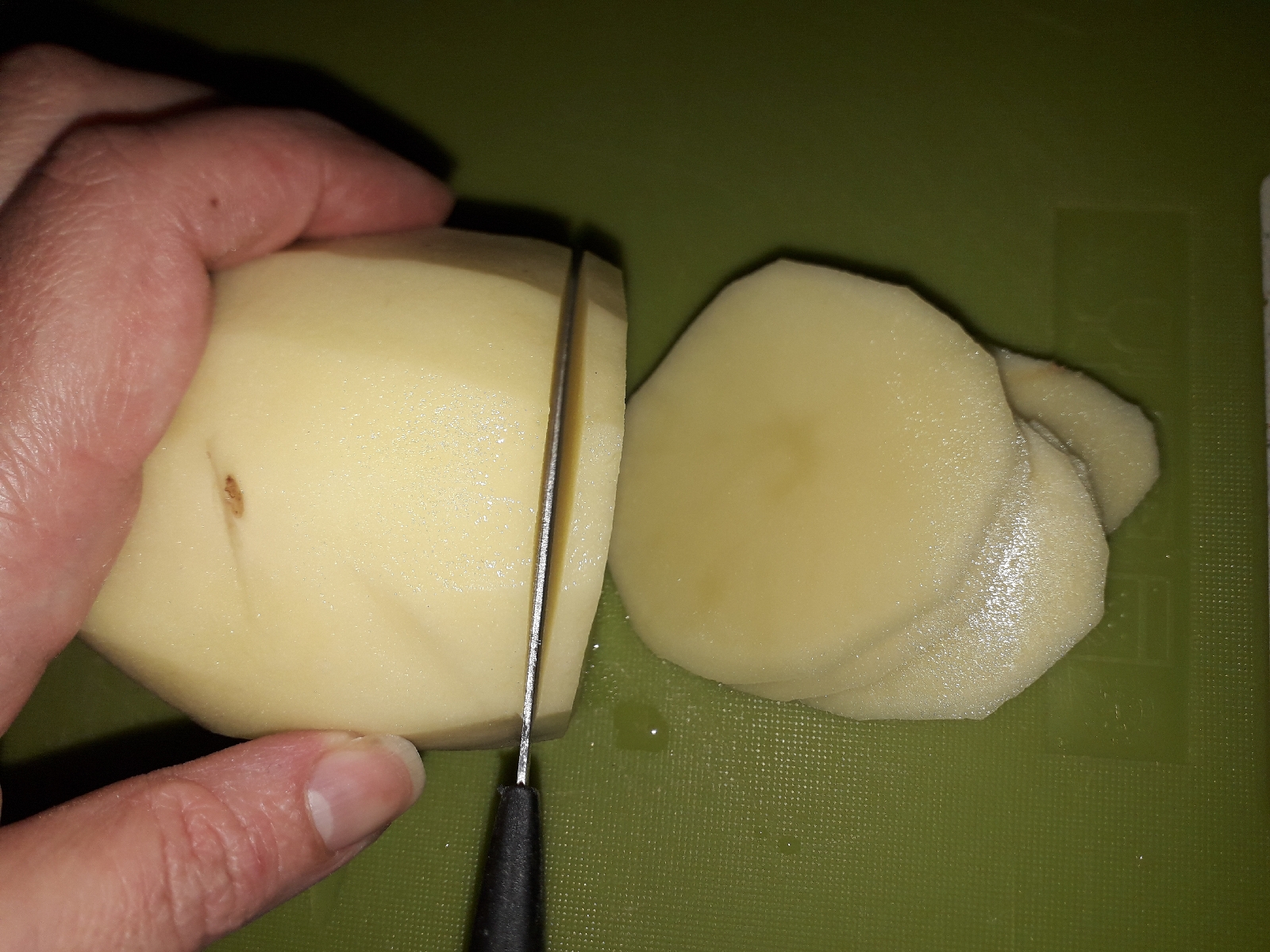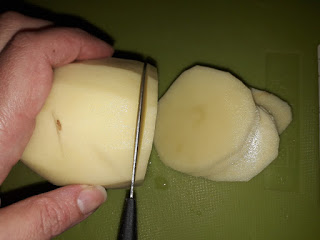1) Prendere una patata, lavatela e sbucciatela.