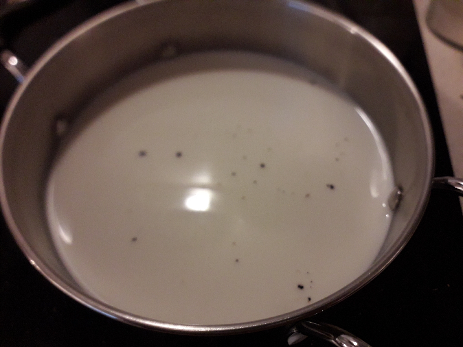 Togliere tutte le scorsette ed il baccello di vaniglia, ed eventualmente aggiungere la cioccolata, mescolare velocemente e facendo attenzione che sia tutto ben amalgamato.