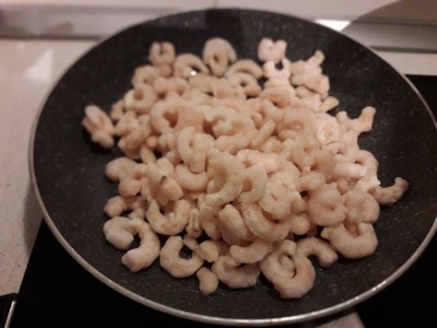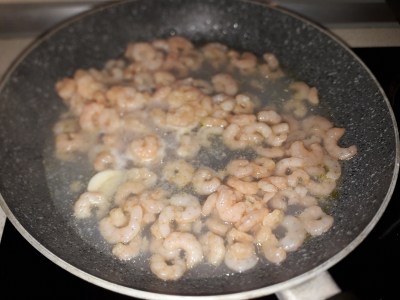 2) versate i gamberetti (io ho usato quelli surgelati) ed aspettare che si scongelino.