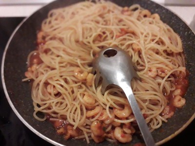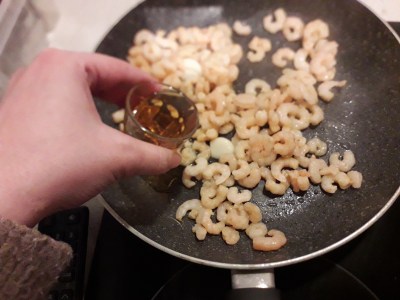 In caso di gamberetti freschi, fare lo stesso aggiungendo il fumetto che avevate fatto precedentemente.