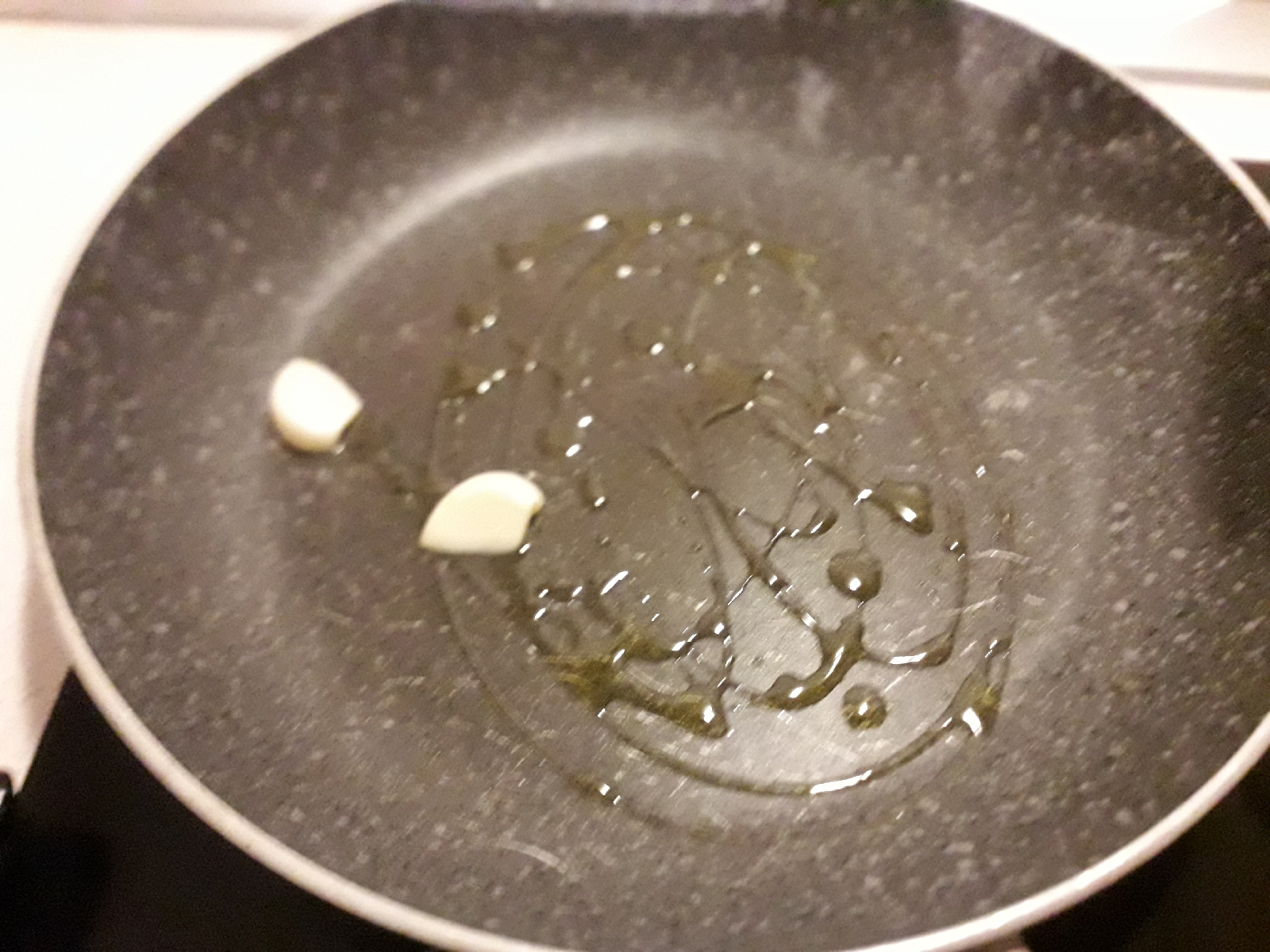 1) mettete a bollire l’acqua della pasta, private l’aglio dell’anima e fate scaldare in una padella l’olio insieme all’aglio ed il peperoncino, senza far soffriggere.
