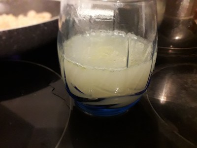 3) una volta che si saranno completamente scongelati, prendete tutta l’acqua di cottura e mettetela in un bicchiere e tenete da parte.