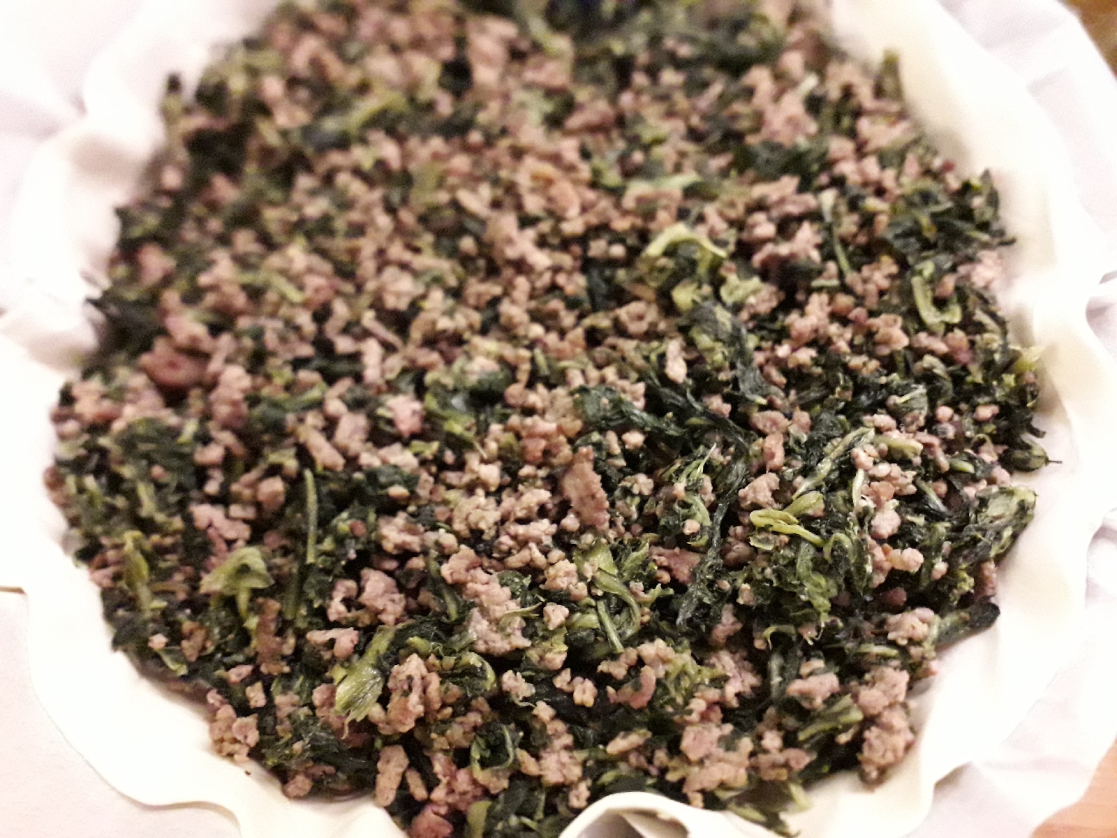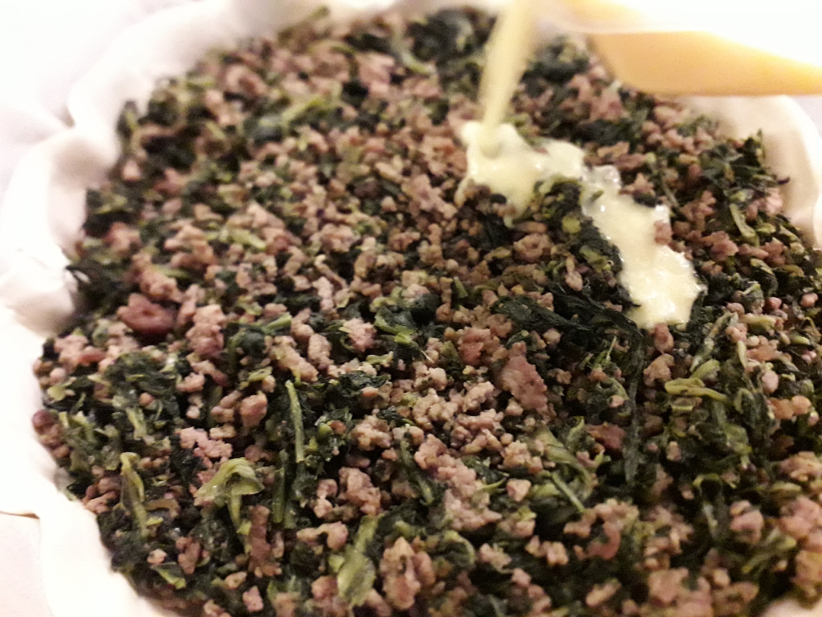 7) mettere il composto sulla pasta, stendere in modo uniforme.