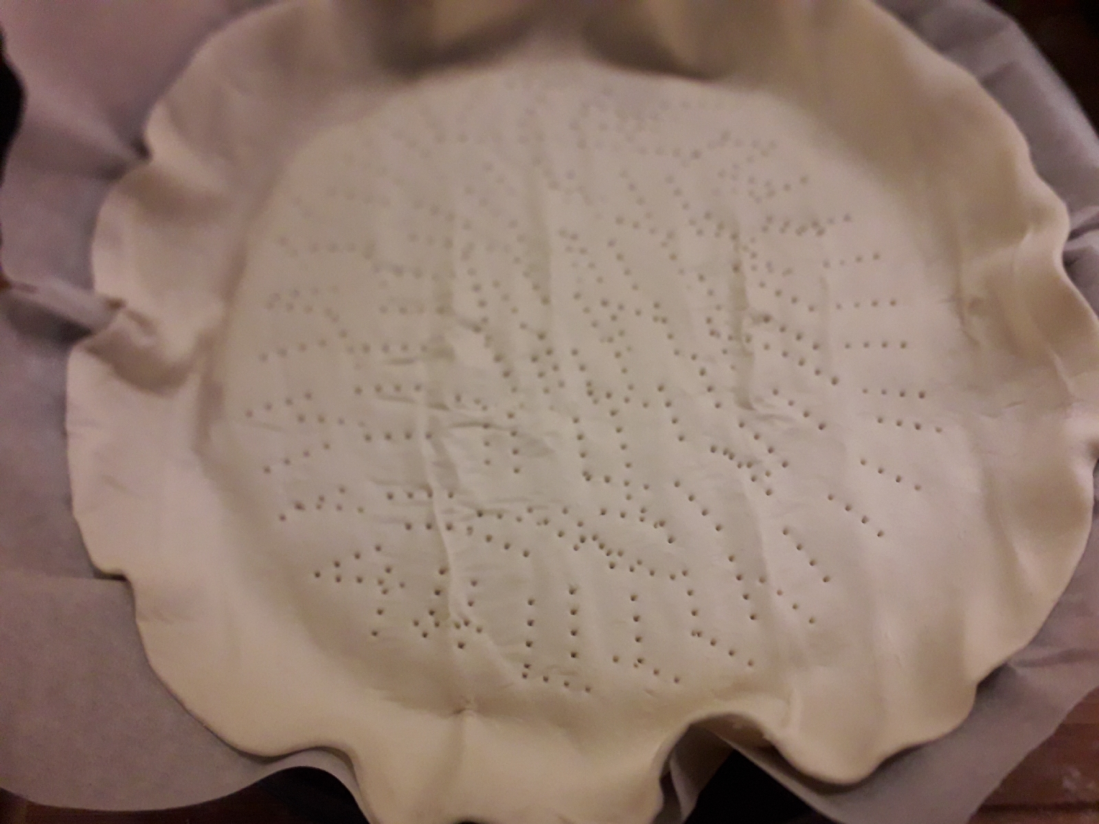 6) stendere la pasta brisè o pasta sfoglia e bucherellare