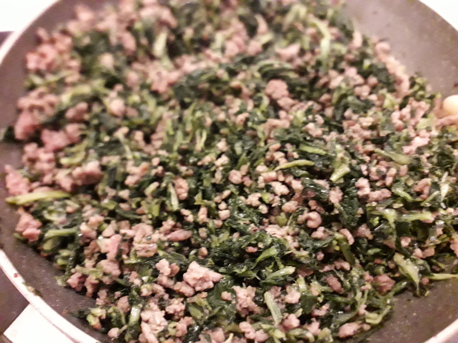 5) accendere il forno a 200°. Al composto di cicoria unite anche la salsiccia e rosolare tutto insieme per 2 minuti ancora, nel frattempo preparate il resto la pasta sfoglia ed il legante.