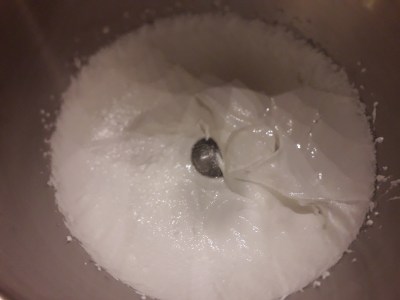 2) mettere in una planetaria gli albumi. Appena inizieranno a fare delle bolle in superficie mettere lo zucchero un pò per volta, circa 100 gr dei 175 che avete.