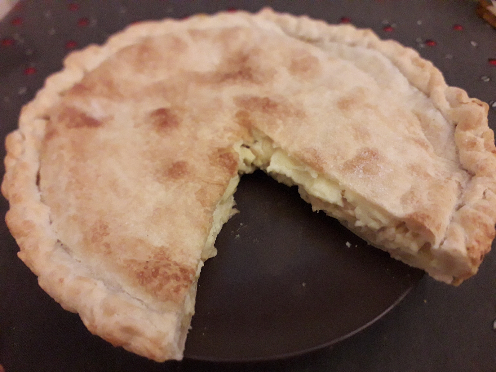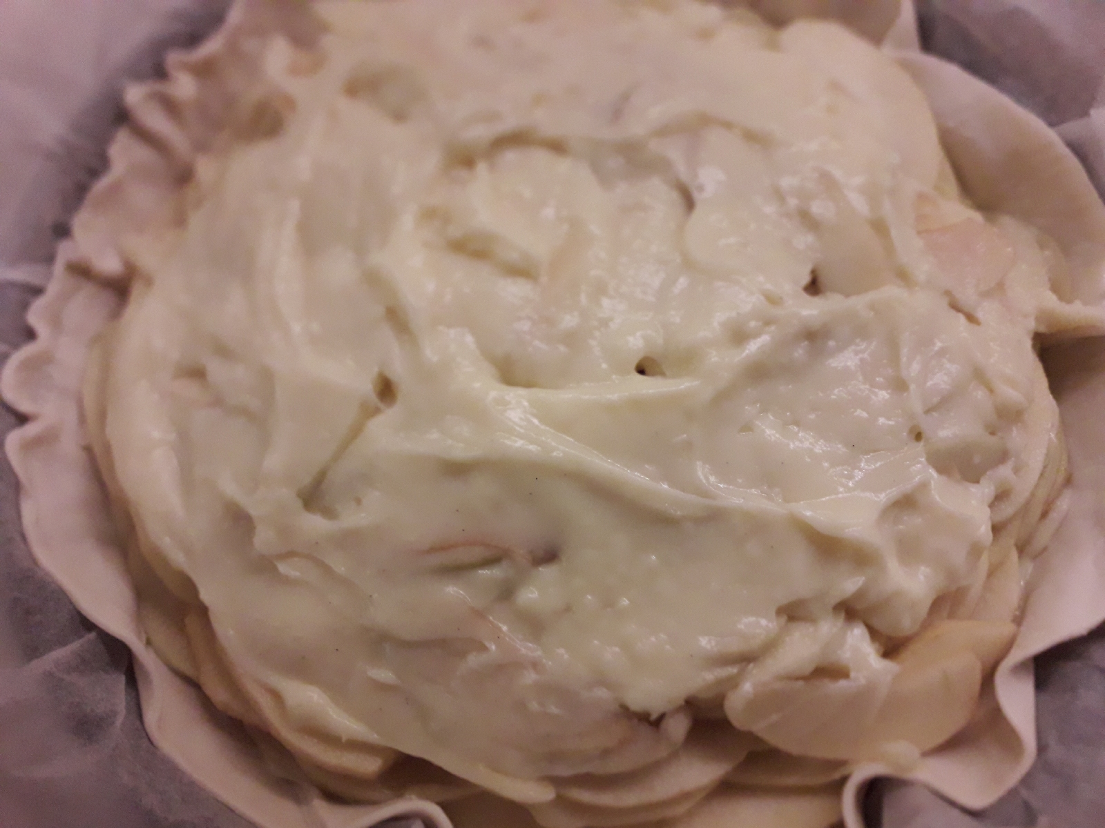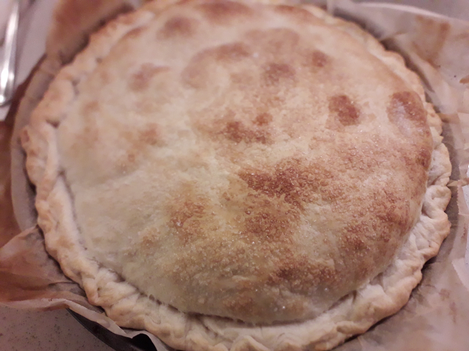 10) Ricoprire con la restante pasta sfoglia e siggillare i bordi. Cospargere la superficie con lo zucchero semolato.