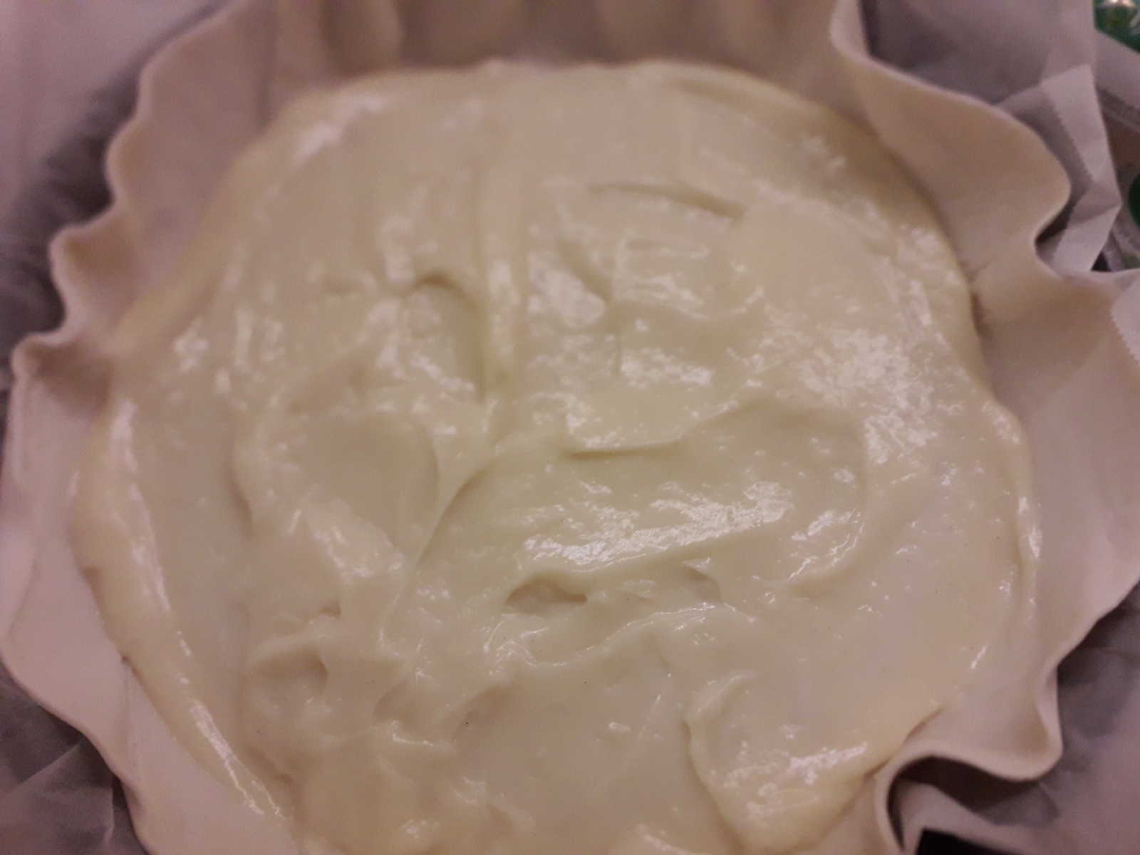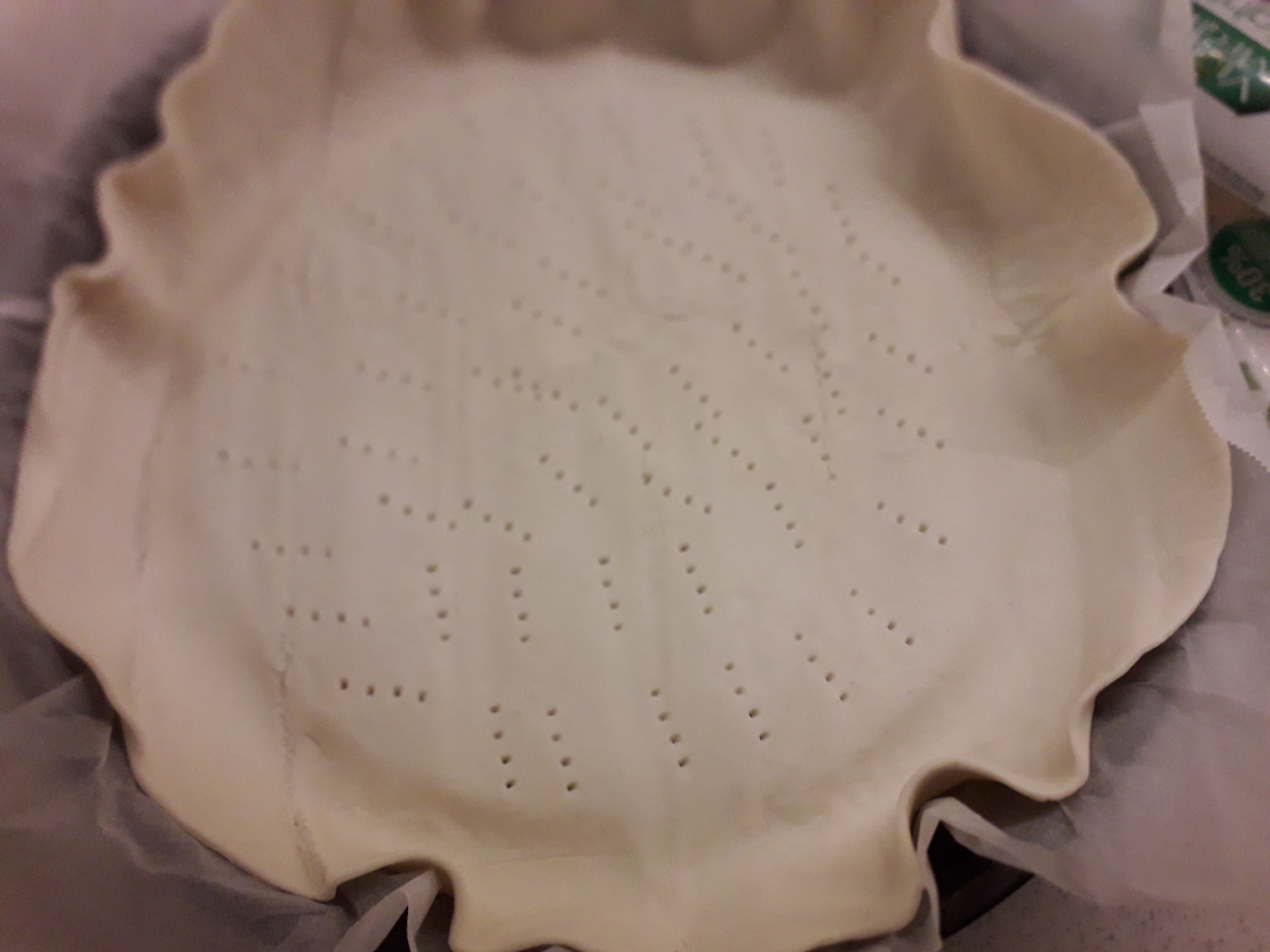 6) prendere la pasta sfoglia e metterla in una tegliacon i bordi alti 4 cm circa.
