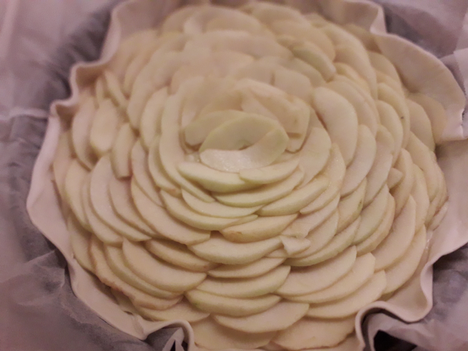 8) partendo dall’esterno mettete le mele una in filo all’altra.