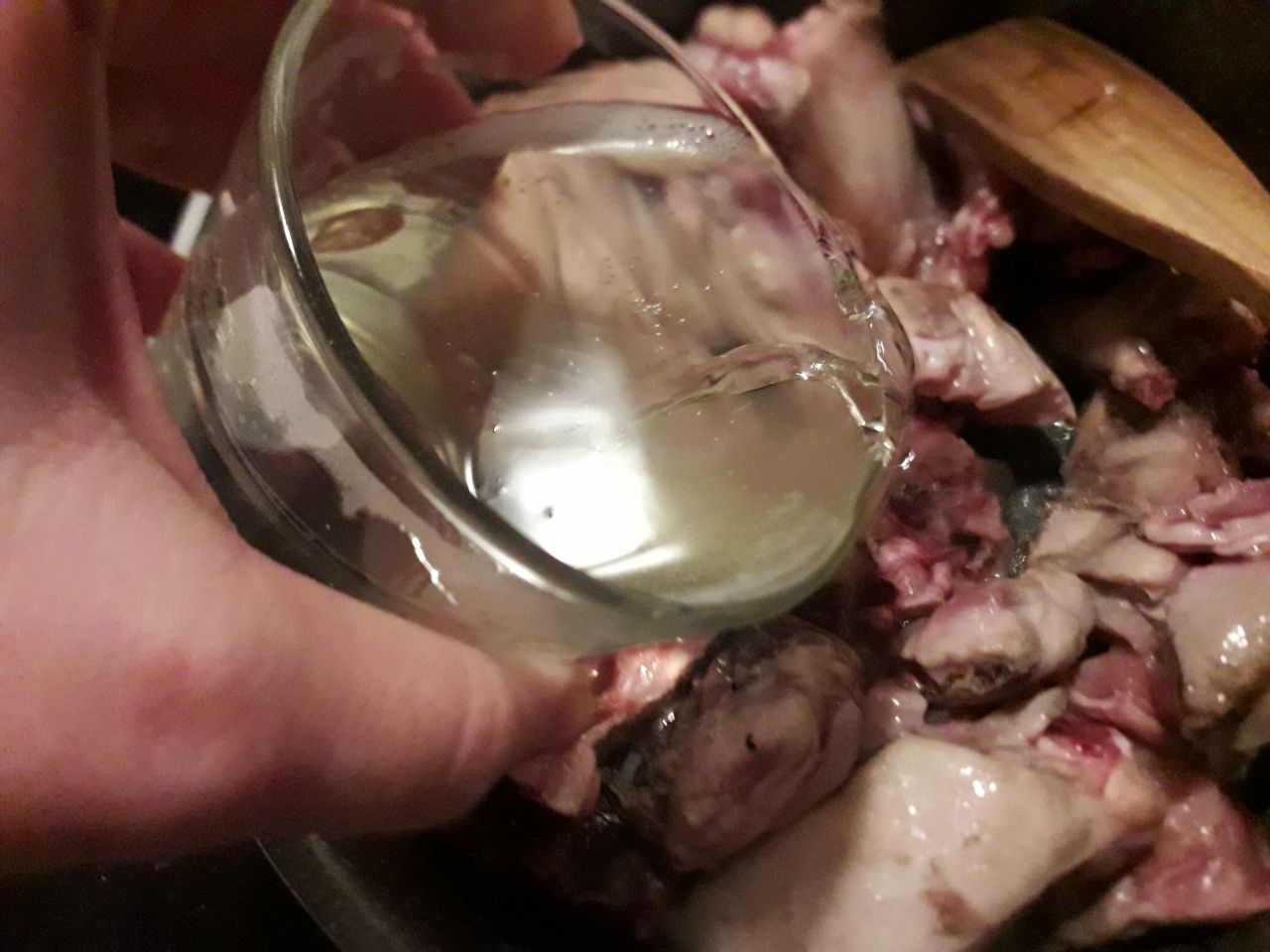 3) Quando gran parte della superficie saràdiventata bianca aggiungete il bicchiere di vino e fate sfumare