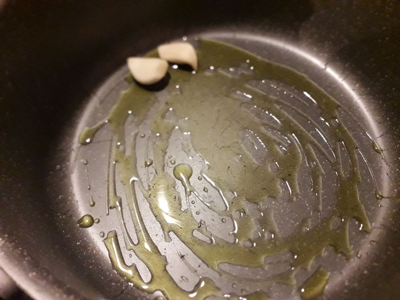 1) mettere in un tegame largo dai bordi alti l’olio con l’aglio e lasciate scaldare