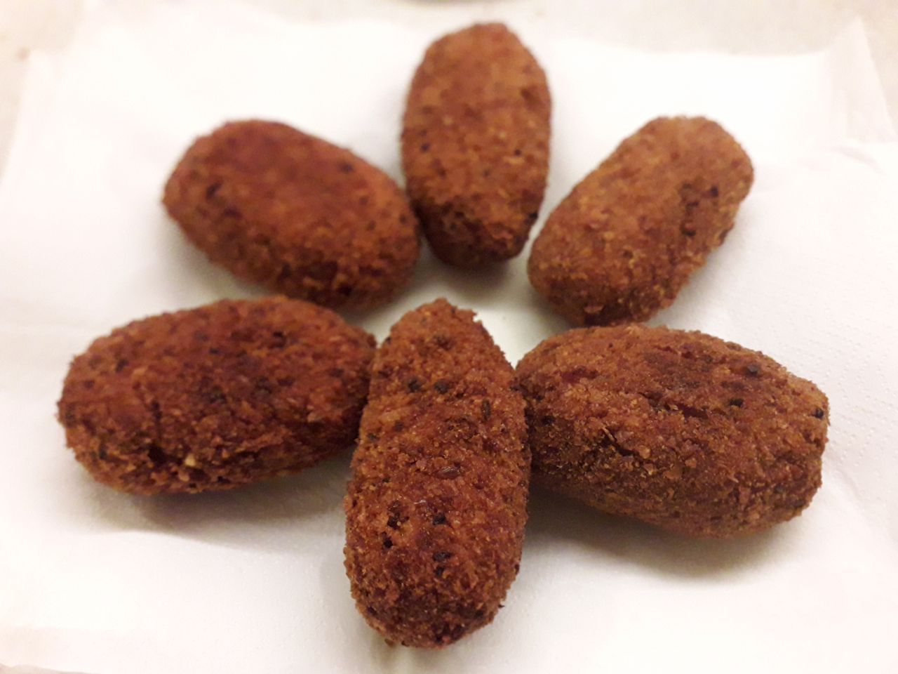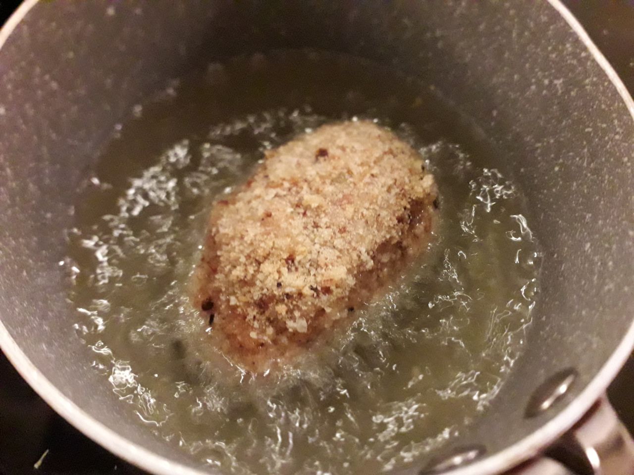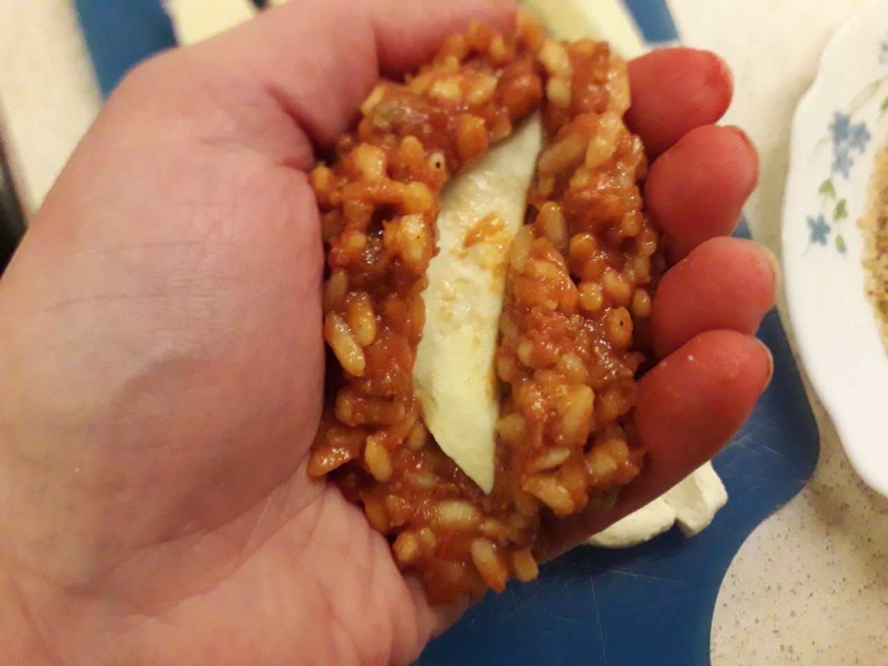 12) friggere in un padellino piccolo dai bordi alti, in olio caldo, ma non caldissimo. Si deve sciogliere bene la mozzarella presente all’interno, quindi dovrà friggere per almeno 5 minuti.