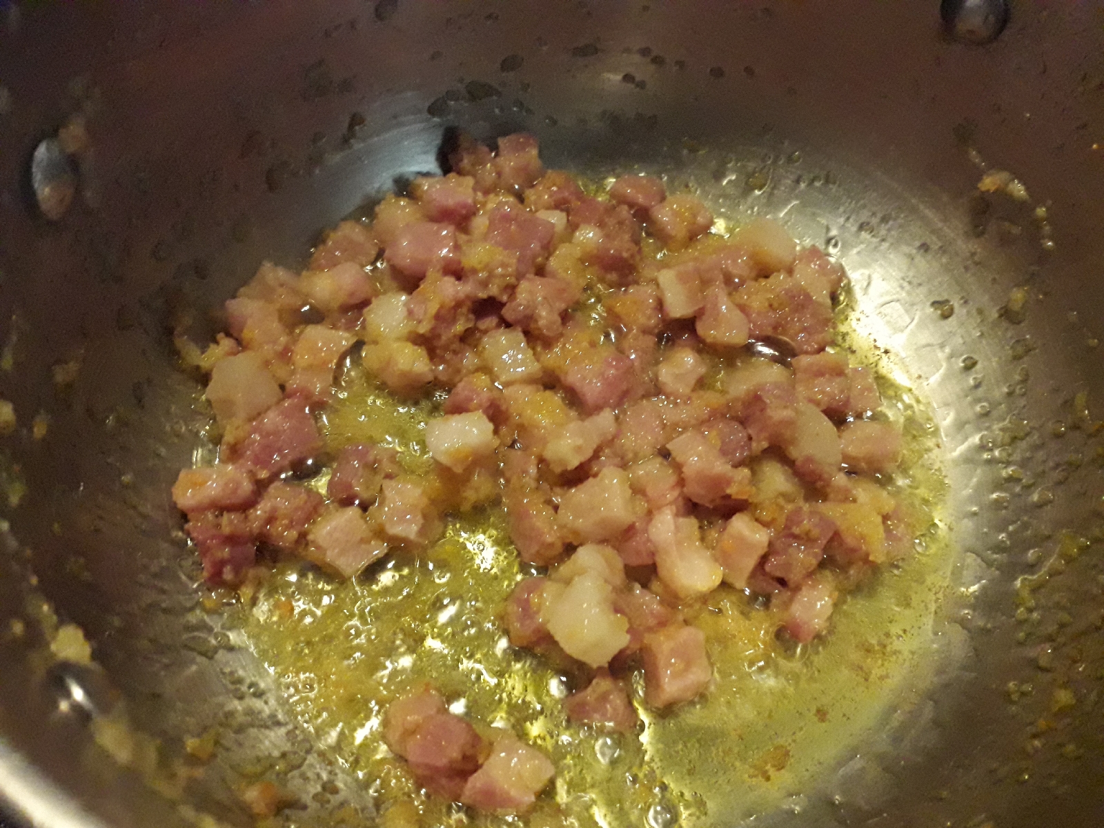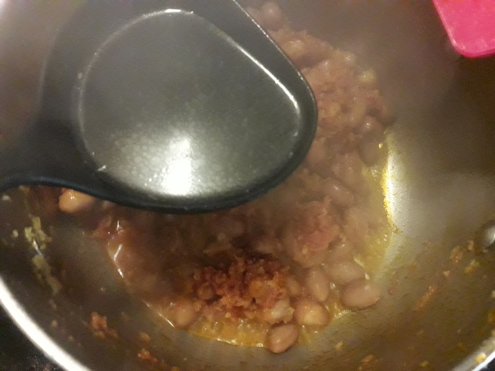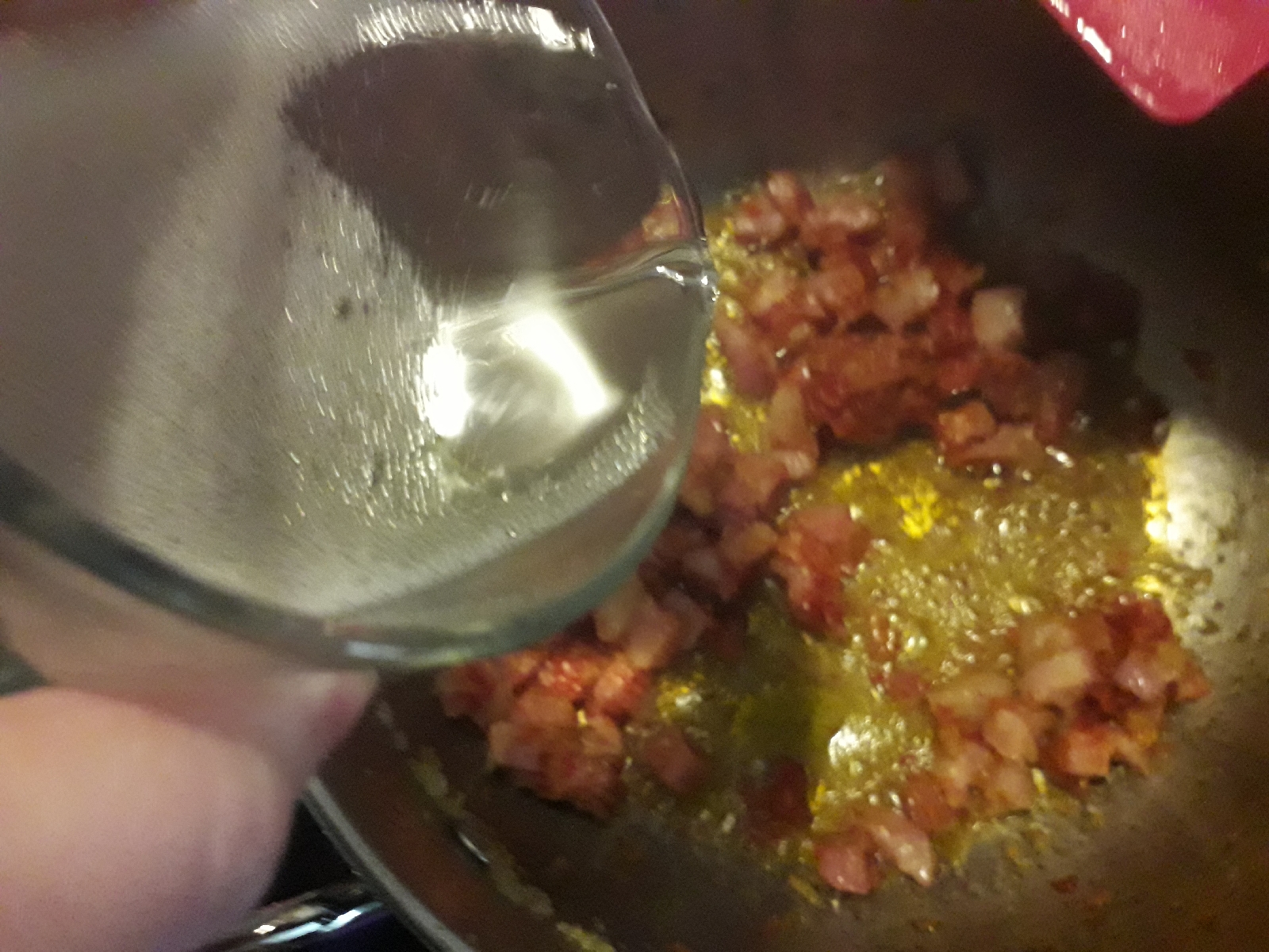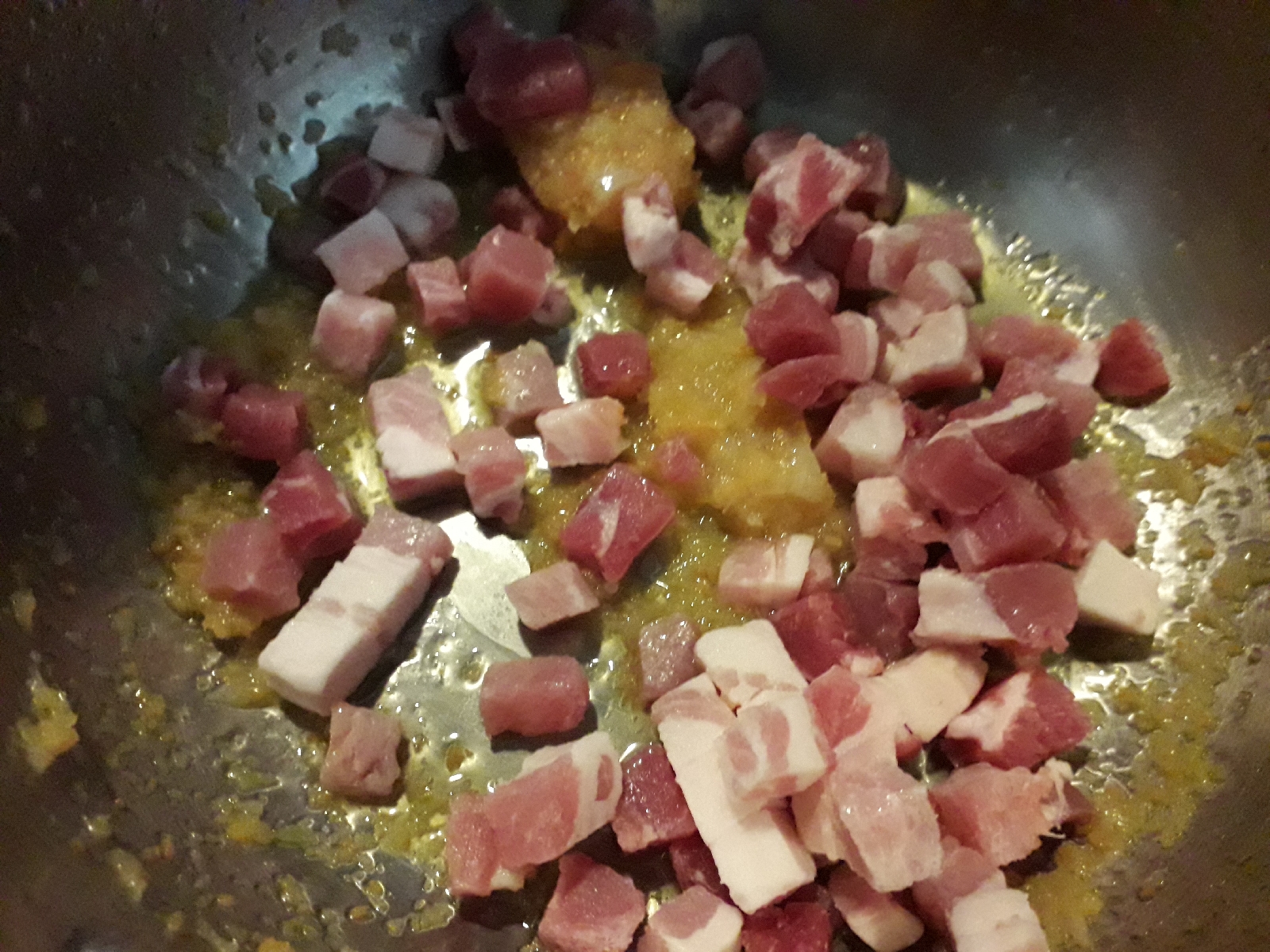 6) scolate e lavate i fagioli in scatola aiutandovi con un colino ed aggiungere al composto di pancetta