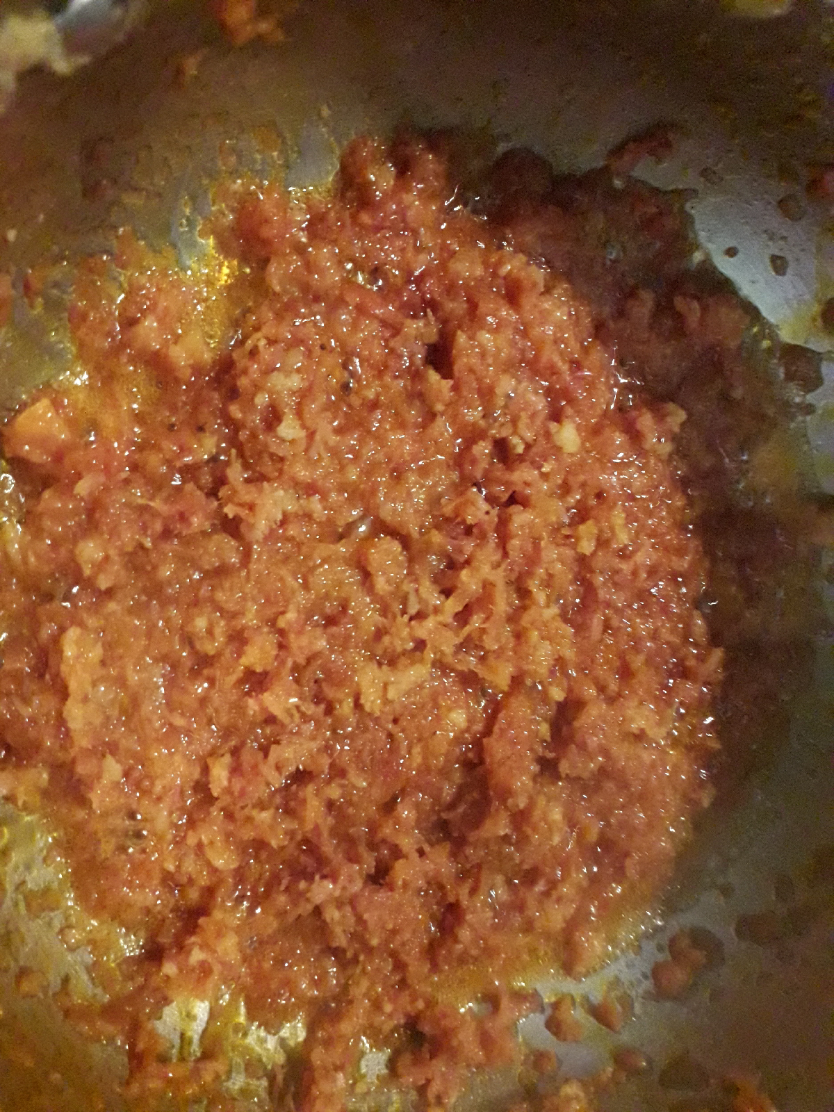 3) quando sarà rosolata aggiungete il pomodoro concentrato e fate amalgamare il tutto qualche istante