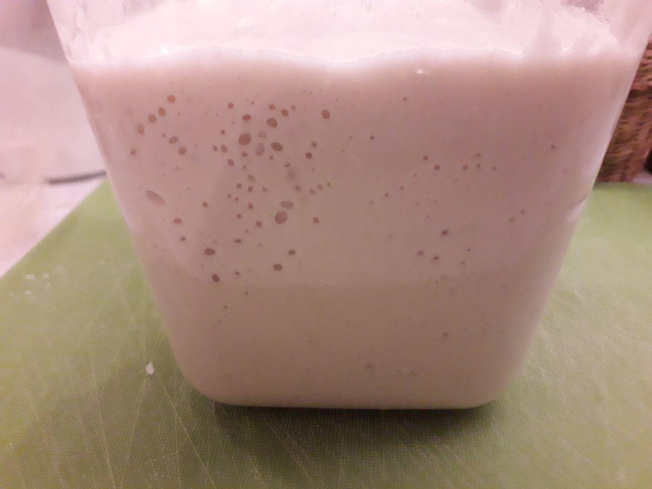Un lievito madre in salute non odora di aceto/vinavil e triplica il suo volume ogni 4 ore.